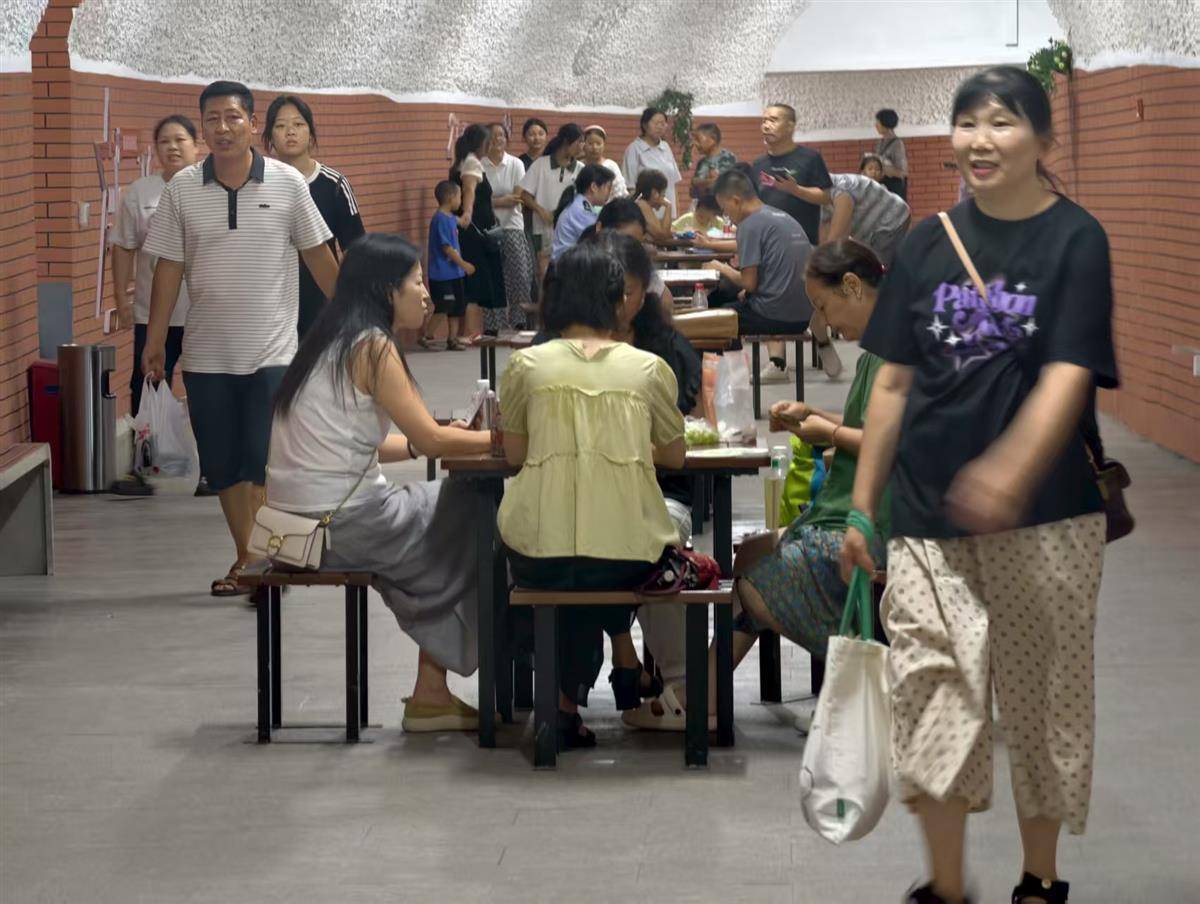 当天下午四点人气正旺。羽毛球场地上,当地社区安排了一场公益电影,吸引了近百人带着小板凳前来“围观”。乒乓球区,家住黄石路的王同学正和球友挥拍对战,“这么热的天,还能去哪儿呢?来这里就对了,又凉快又不耽搁锻炼。”他说。休闲区里,不少市民正围坐在一起看报、下棋,老人们带着孩子开心地玩耍或写作业,室外烈日炎炎,这里却透着满满惬意。