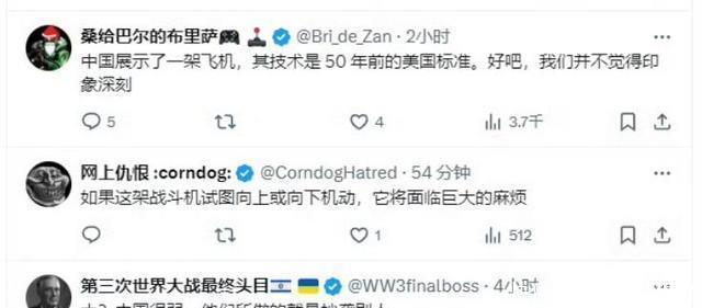 中国则不同,制造能力强,研发周期短,从首飞到测试只几个月就能看到新数据,中国J-36和J-50首飞了后,继续测试不断,又有新进展。2025年中国航空展上,更多细节曝光。 空警-3000预警机也基于运-20平台首飞成功,进一步巩固了中国在综合航空实力上的位置。国际观察家都说,中国在拉开差距。 美国网友在X上炸毛了,有人说中国用的是美国50年前的标准,有人直呼我们的研究人员在干啥。罗戈威的文章被转发无数次,评论区里吐槽美国官僚的不少。罗戈威自己也更新了好几篇,强调美国得面对现实,别再吃老本。 全球航空竞争就是这样,谁先掌握核心,谁就占上风。中国从三代机落后,到四代机追赶,五代机并行,现在六代领先,这步步紧逼,让美国霸权梦有点碎裂的感觉,美国想维持领先,得花大力气调整。